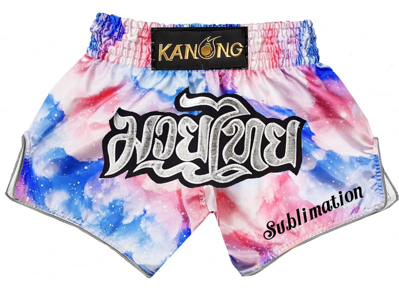 最高品質の100%サテン素材を使用したムエタイショーツ。耐久性のある伸縮性のあるウエストバンドで、激しいトレーニングや本格的な試合でのパフォーマンスに最適です。昇華プリントで軽量かつ快適な着心地も魅力です。